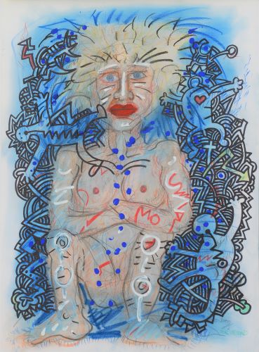 Pavati Der moderne Struwwelpeter bih'kee-yan (komm nach Hause) 50 x 70cm Acryl auf Pappe 60 x 40cm Kreide, filzdtift auf Papier 32 x 43cm Aquarell auf Papier